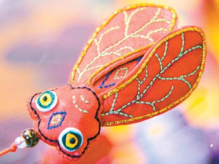香包细密工整的针脚尽显刺绣功力。(西安日报记者王健 摄)